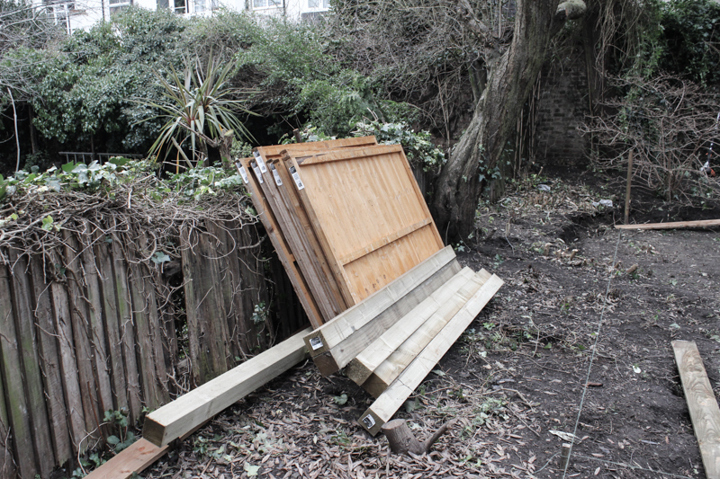 And the patio has been pegged out, and some of the sleepers are going into place.