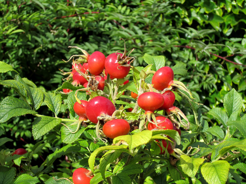 Or what about a rose hedge? Rosa Rugosa is both white and magenta and produces hips in the autumn. Like all hedges it needs to be pruned and will need watering to establish, but after that it is low maintenance and tough.